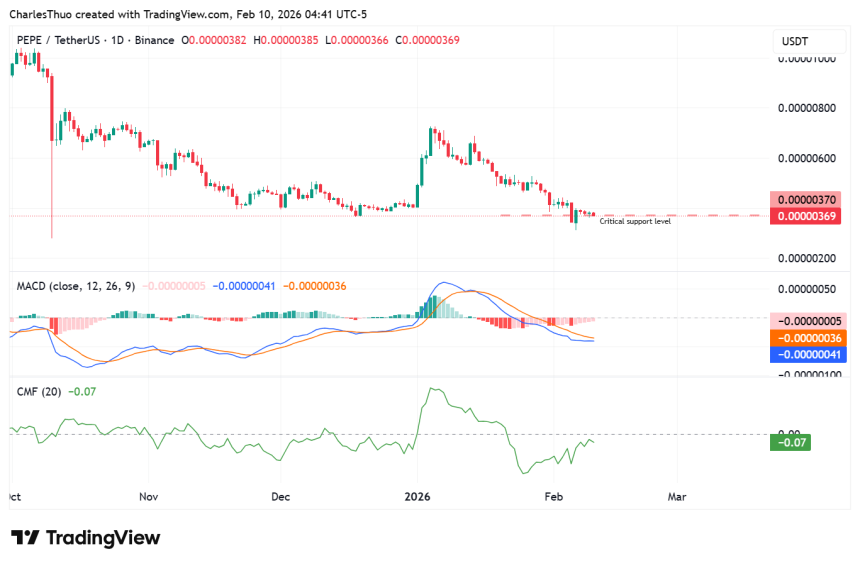 From a technical standpoint, the support zone around the $0.0000036–$0.0000038 range is crucial for determining $PEPEs next moves.