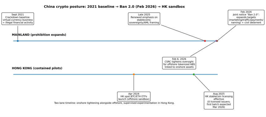 China's February 2026 regulatory blitz also clarified where digital assets are permitted: in tightly supervised, permissioned tokenization lanes.