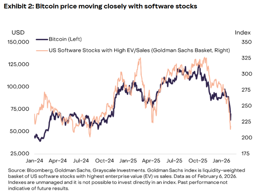 Bitcoins latest plunge mirrors the collapse in software stocks since the start of 2026. Source: Grayscale