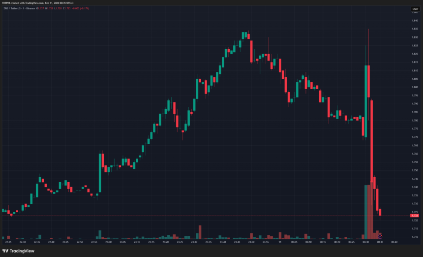 The graph shows the price reversal experienced in $ZRO.