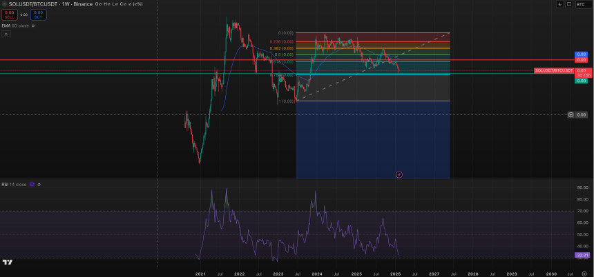 - The chart shows the ratio between Solana's sol $SOL$81.59 and bitcoin on a weekly basis.