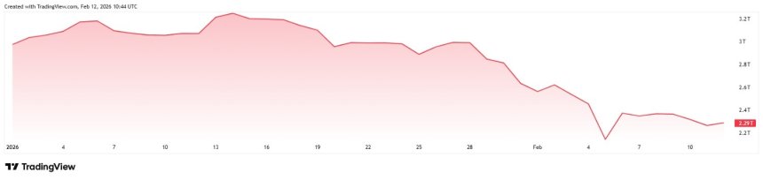 Specifically, digital assets started the year valued at $2.97 trillion, then rose to $3.25 trillion, and finally crashed to their February 12 market capitalization of $2.29 trillion.