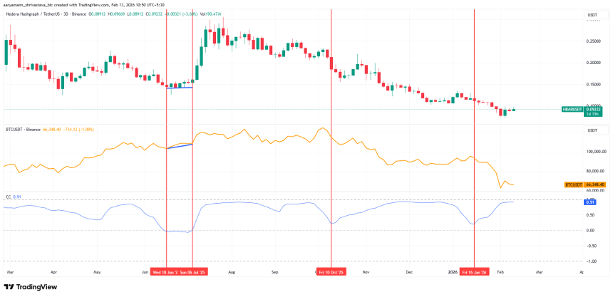 $HBAR Correlation To Bitcoin. Source: TradingView