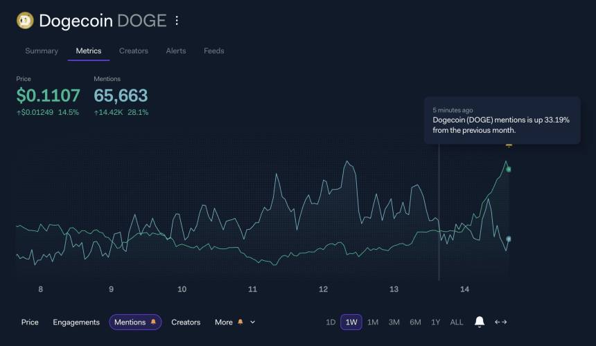 $DOGE) Mentions. Source: LunarCrush>
