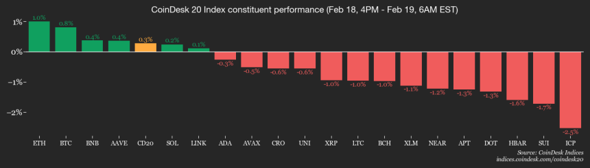 By Jacob Joseph (All times ET unless indicated otherwise)Even with the CoinDesk 20 index (CD20) litt