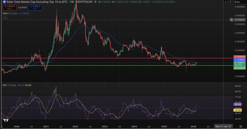 Total crypto market cap excluding top 10 tokens to bitcoin (TradingView)