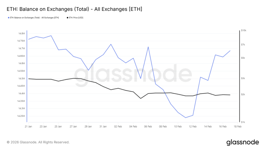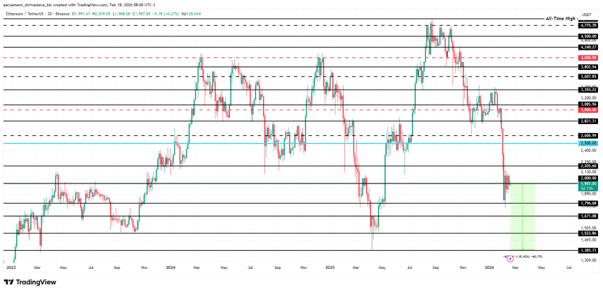WikiBit 2026-02-19 05:03Ethereum has extended its recent decline, slipping toward the $2,000 level. At first glance, the pul