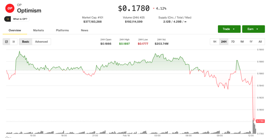 The OP token is down 4% over the past 24 hours following the announcement.
