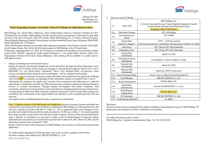 SBI announced the initiative yesterday, marking what it describes as the first-ever on-chain Security Token (ST) bond issuance. The offering allows individual investors in Japan to purchase blockchain-based bonds that automatically deliver an equivalent amount of $XRP upon subscription.