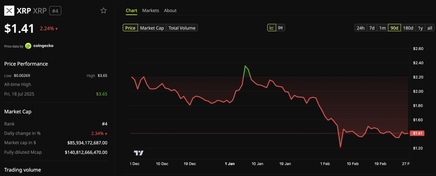 The new initiatives come as $XRPs performance continues to track the broader market. BeInCrypto Markets data shows that the altcoin declined 2.24% over the past day. At press time, $XRP was trading at $1.41.
