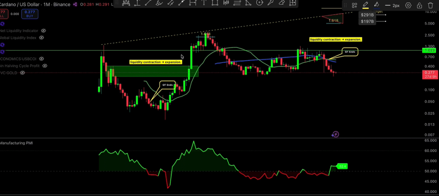 These conditions align with the current market, with quantitative tightening ending in December 2025 and the PMI showing strength. With liquidity expected to flood the global market, history shows that something interesting could be in the pipeline for $ADA.