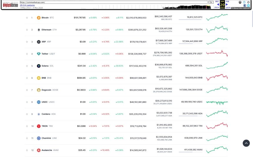 Likewise, a $100 allocation to Cardano would now stand at around $28, following a 72% decline. Elsewhere, Avalanche recorded one of the sharpest corrections among the largest cryptocurrencies. A $100 investment in AVAX would now be worth approximately $26, after losing about 74% of its value.