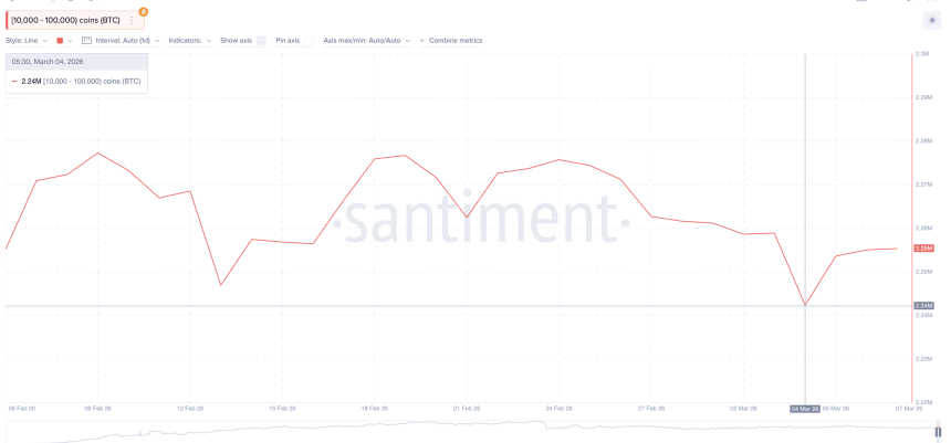 At the same time, large Bitcoin wallets appear to have increased their exposure near the peak. Data tracking wallets holding between 10,000 and 100,000 $BTC shows reserves rising to roughly 2.24 million $BTC on March 4, which coincides closely with the formation of the patterns head. This timing raises a key question: Did whales buy the top?