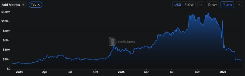 $FLOW is down 99.9% from its 2021 all-time high when it reached $42, according to CoinGecko. Total value locked on the platform is down 82% to $21 million since its November 2025 peak, reports DeFiLlama.