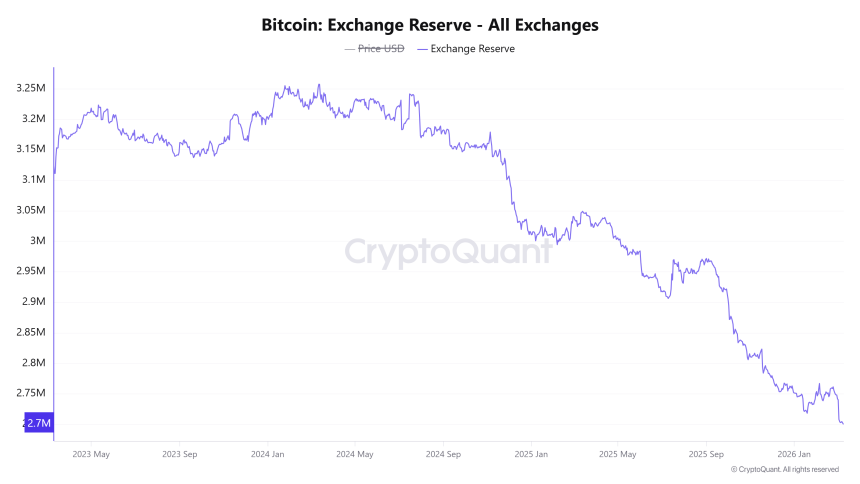Holdings on centralised platforms have dropped to levels not seen since 2019, with millions of coins being withdrawn into private wallets or institutional custody.