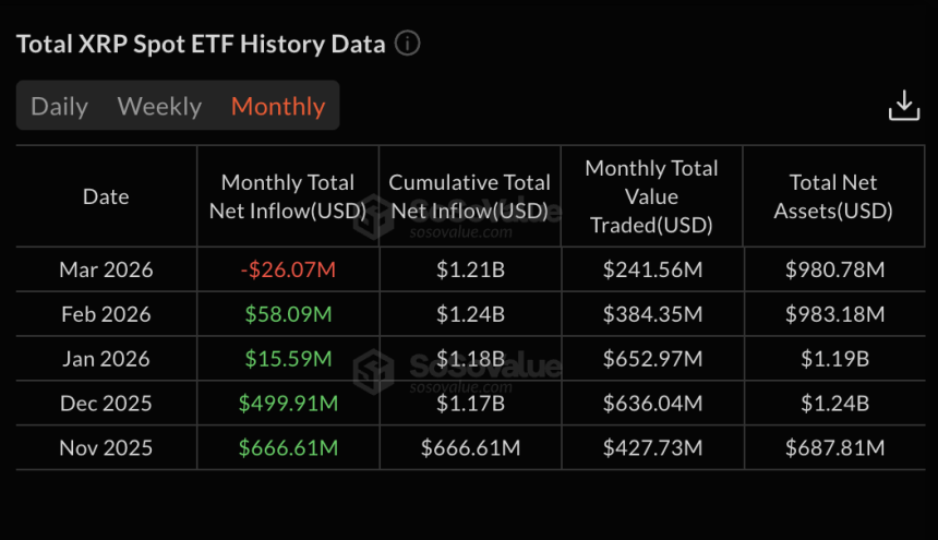 March is now the first negative month in $XRP ETF history (still developing), extending a steady slowdown that began after the strong inflows seen late last year.