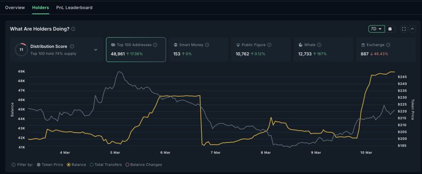 Combined, the two cohorts accumulated roughly 15,078 $ZEC over the past seven days, worth about $3.3 million at current prices, signaling fresh large-holder accumulation during the recovery phase.