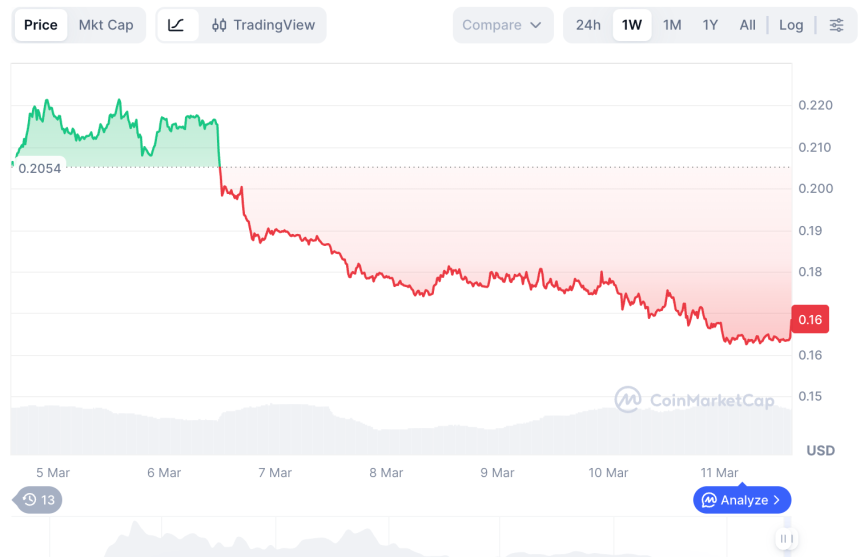 At the time of reporting, $WIF was valued at $0.16. It remains sensitive to ecosystem trends. Forecasts for 2026 indicate possible upside to $0.40–$0.90 in optimistic scenarios, though volatility persists.
