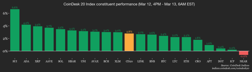 - CoinDesk 20 is up 3.14% at 2,068.83 (24hrs: +3.01%)