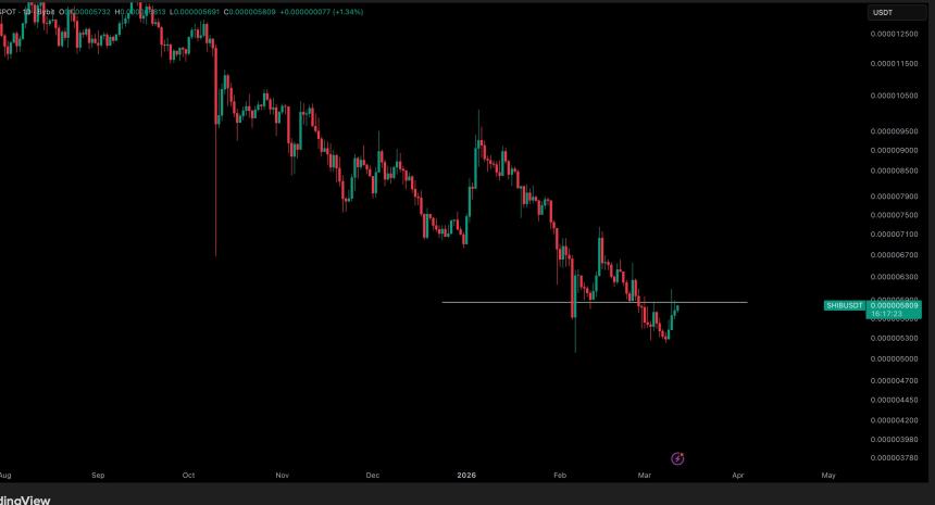 Elsewhere, on social media, Crypto Tony said Shiba Inu is starting to “look interesting.” The chart supports that view as price rebounds toward the key $0.000005900 area after a prolonged downtrend.