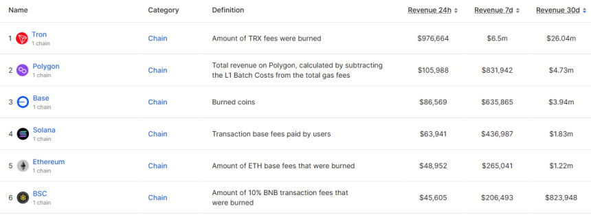 Revenue by Chains. Source: DefiLlama