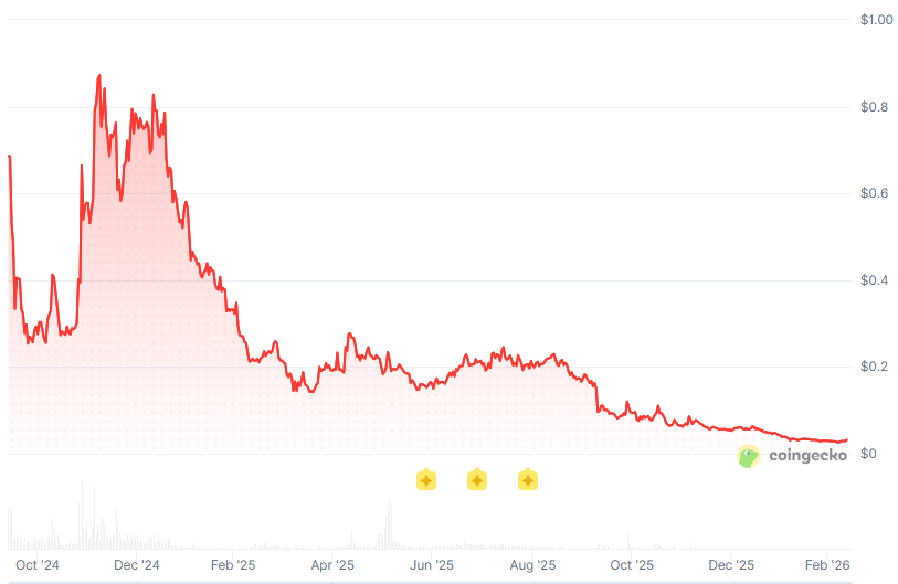 The PUFFER token tells a similar story. The token hit an all-time high near $1.00 in December 2024 but has since cratered, hitting an all-time low of $0.025 just last week, according to Coingecko.