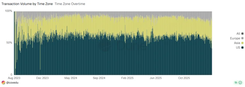 Crypto activity shifted to Asian markets in the past few months, while US trading slowed down. | Source: Dune Analytics