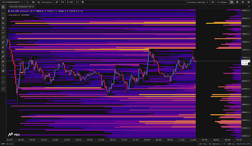 According to the latest MMT Heatmap update from Columbus, Bitcoin experienced a significant surge into the upper liquidity pocket during the overnight session. The price climbed aggressively to the $73,000 mark, testing the strength of overhead supply. However, this momentum was met with a sharp corrective reaction as it approached a substantial liquidity cluster situated near $74,000.