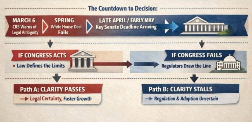 If the bill stalls, the industry would remain more dependent on guidance, rulemaking and future political turnover.