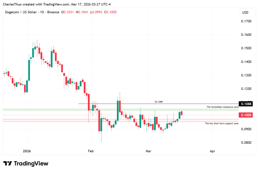 WikiBit 2026-03-17 19:02Dogecoin price is holding strong above key support near $0.0955.A break above $0.1088 could trigger