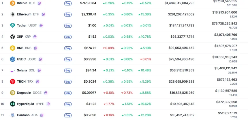 Changes have occurred in the top 10 rankings on Coinmarketcap. Accordingly, Hyperliquid has overtaken Cardano ($ADA) with a remarkable performance.