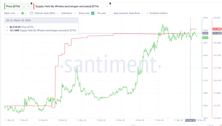 WikiBit 2026-03-18 21:02Ethereum price is showing strength even as the broader crypto market remains mostly flat. Over the p
