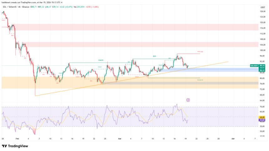 While $SOL maintains position above $90, the formation of ascending lows stays intact, preserving possibility of movement toward resistance $95-100 and potentially $105-110. However, if price falls below $82, that structure breaks and the market reverts to the bearish narrative dominating prior months.