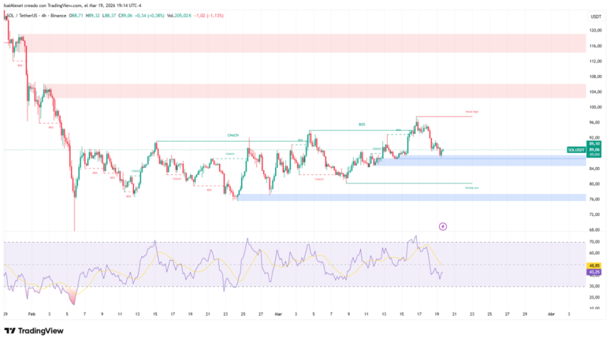 Solana trades in technically delicate territory where immediate support at $92-94 will determine whether the network consolidates its recovery or reverts to the bearish trend of prior months. $SOL fluctuated between $83 and $97 during March 2026, reflecting market indecision regarding the durability of the bounce from $78 lows. As March progresses, the price has pulled back again from the resistance zone $95-100, reopening questions about the solidity of the upside move and the tokens ability to sustain gains.