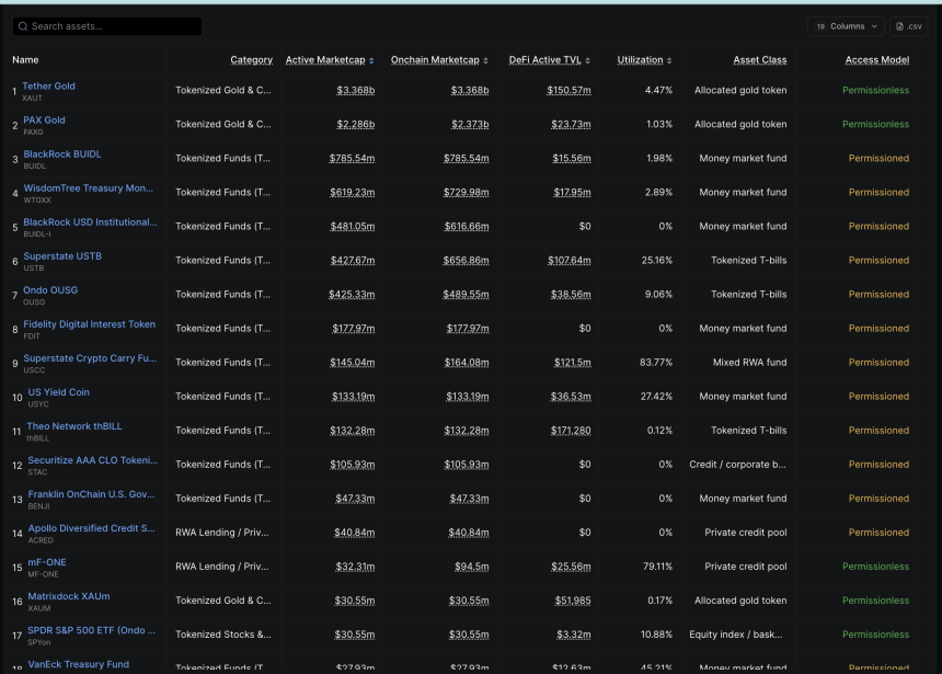 RWA On Ethereum: DeFillama