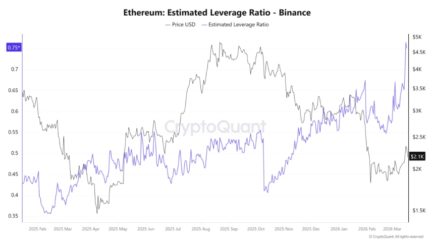 According to CryptoQuant, Ethereums Estimated Leverage Ratio (ELR) on Binance has hit a record level of 0.751.