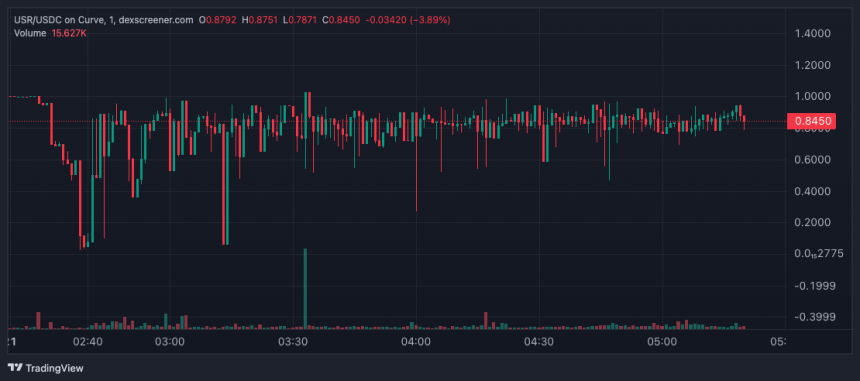USRs price compared to $USDC on Curve showing its flash-crash and depeg on Sunday. Source: DEX Screener