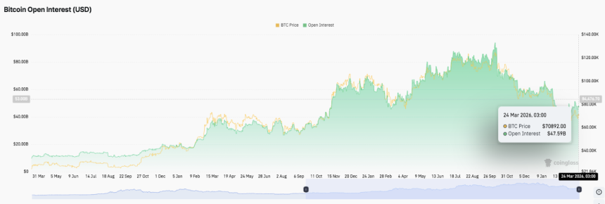 Open interest trends reveal a broader pattern of growth despite periodic resets. Participation increases during bullish phases, reflecting rising speculative activity. However, recent declines in open interest suggest reduced exposure and cooling sentiment.