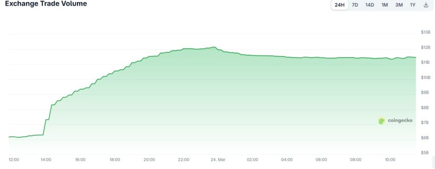 Binances market leadership coincides with a period of strong bullish momentum. During the 24 hours to press time, total exchange trade volume surged from approximately $6,154,645,988 to $11,447,143,379, an increase of 85.99%.