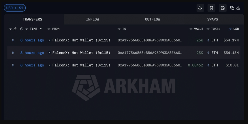 For context, the wallet received 25,000 $ETH ($54.17 million) twice from FalconX, bringing the total to $118.3 million.