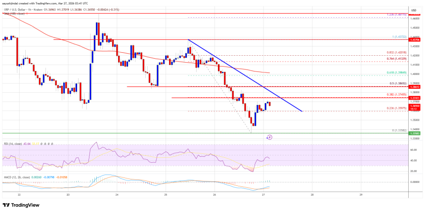 WikiBit 2026-03-27 13:02$XRP price extended losses and traded below $1.40. The price is now consolidating losses but faces h