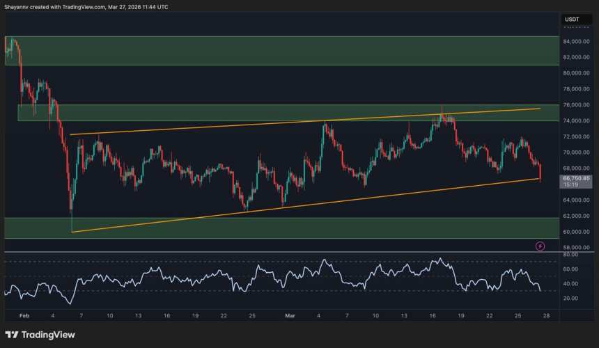 WikiBit 2026-03-28 06:02Bitcoin has entered a delicate phase. It is testing the lower boundaries of its recent consolidation