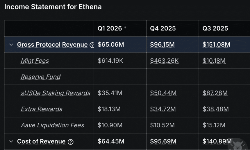 A key area of concern is revenue efficiency. Gross Protocol Revenue fell to $65.06 million, down from $96.15 million in Q4 2025, representing a 32% decline. The drop becomes even more pronounced when compared to Q3 2025.