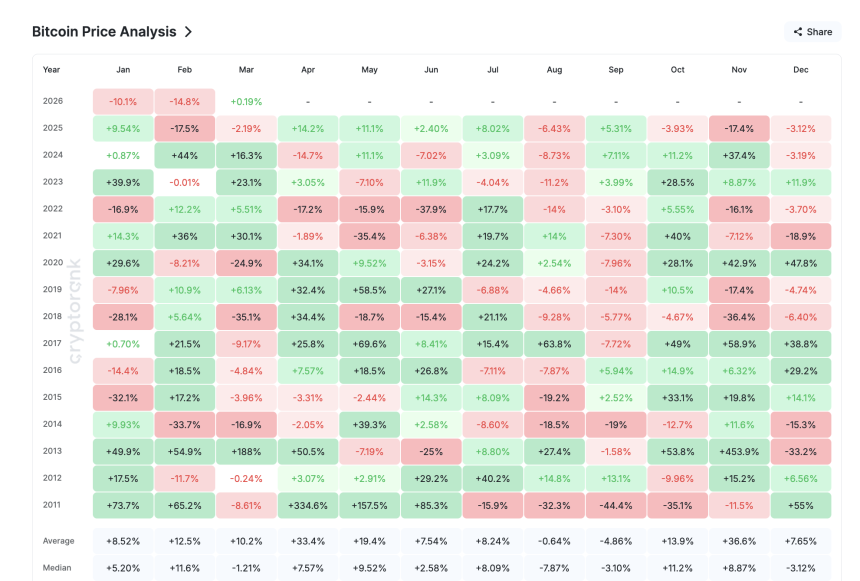 Bitcoin Monthly Returns: CryptoRank