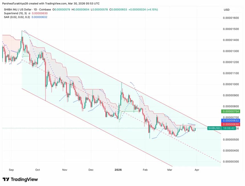$SHIB Daily Chart: Six-Month Channel Meets Its First Real Test