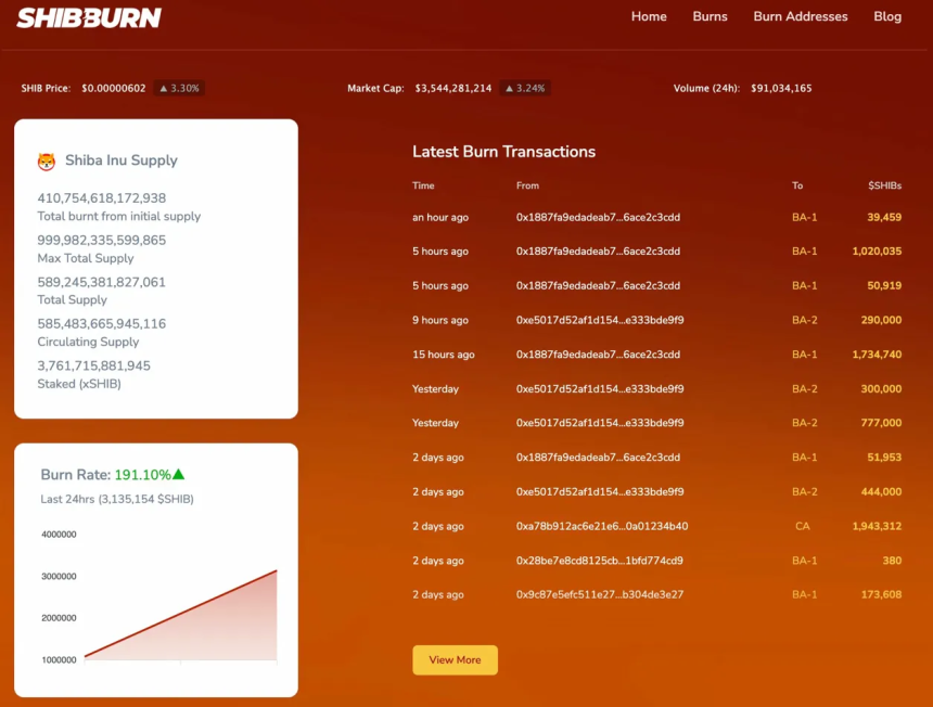 $SHIB Burn Rate Spikes 191% As Supply Removal Accelerates
