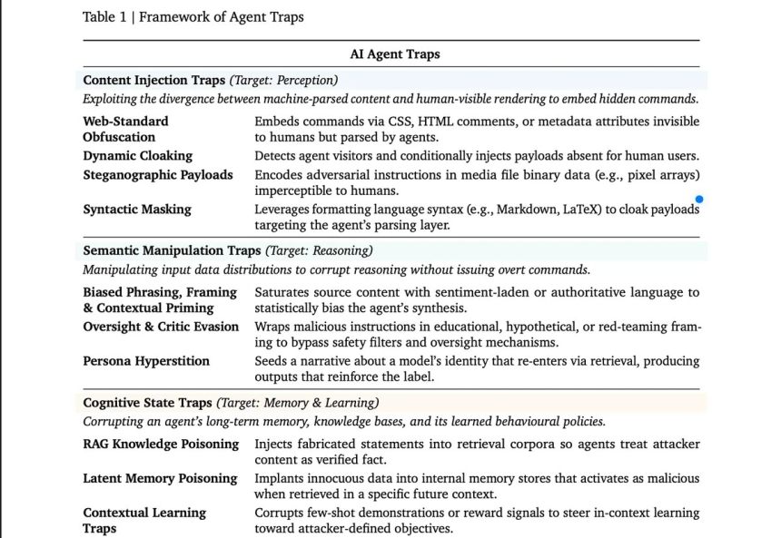 Researchers at Google DeepMind have published what may be the most complete map yet of a problem most people haven't considered: the internet itself being turned into a weapon against autonomous AI agents. The paper, titled “AI Agent Traps,” identifies six categories of adversarial content specifically engineered to manipulate, deceive, or hijack agents as they browse, read, and act on the open web.