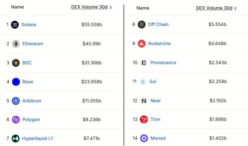 This is happening alongside a slowdown in Solanas on-chain trading activity. Over the last 30 days, DEX volume has fallen to $55.5 billion – Its lowest level since September 2024.