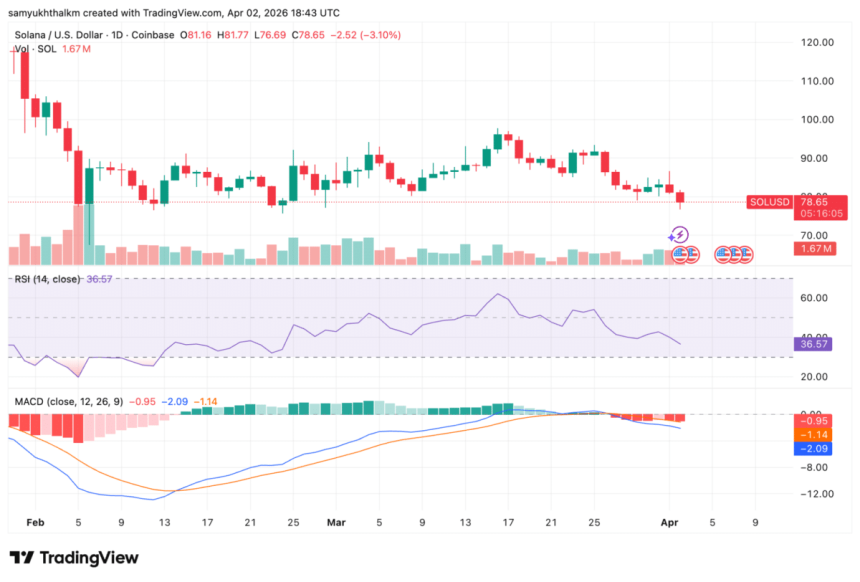 … and the price reflects the thinning demand. On the daily chart, $SOL slipped below the $80-mark, with the RSI proving weak momentum.