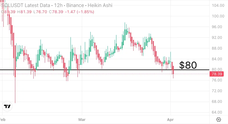 TedPillows emphasizes the importance of the $75 to $78 support zone. According to his analysis, repeated retests increase the likelihood of a breakdown. Consequently, a daily close below $75 could push Solana toward new lows in the high $60s.